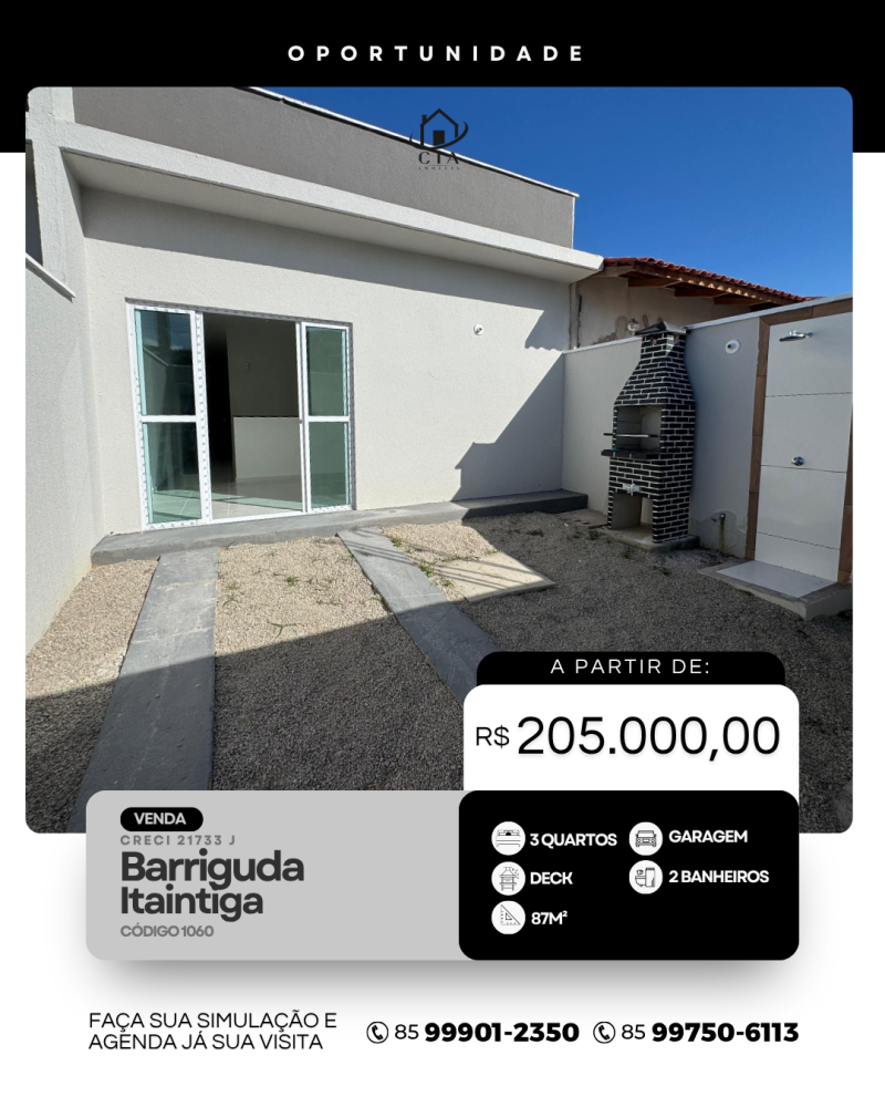 Casa Plana a Venda em Barriguda - Itaintiga/CE