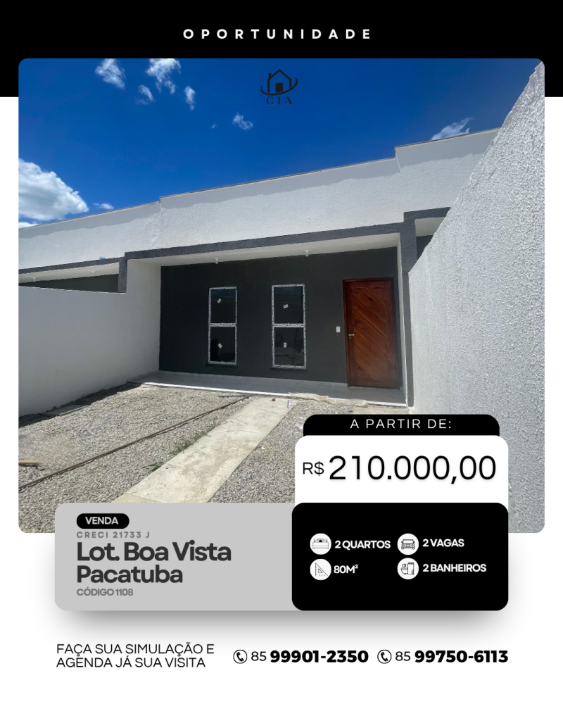 Casas Plana a Venda em Loteamento Boa Vista - Pacatuba/CE