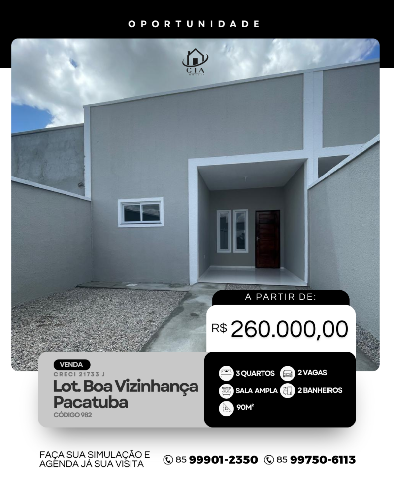 Casas Plana a Venda em Loteamento Boa Vizinhança 4 - Pacatuba/CE