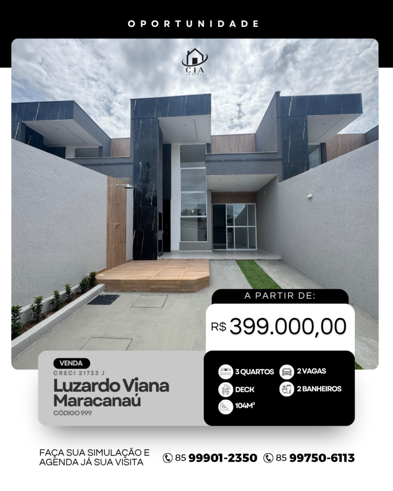 Casas Plana a Venda em Luzardo Viana - Maracanaú/CE