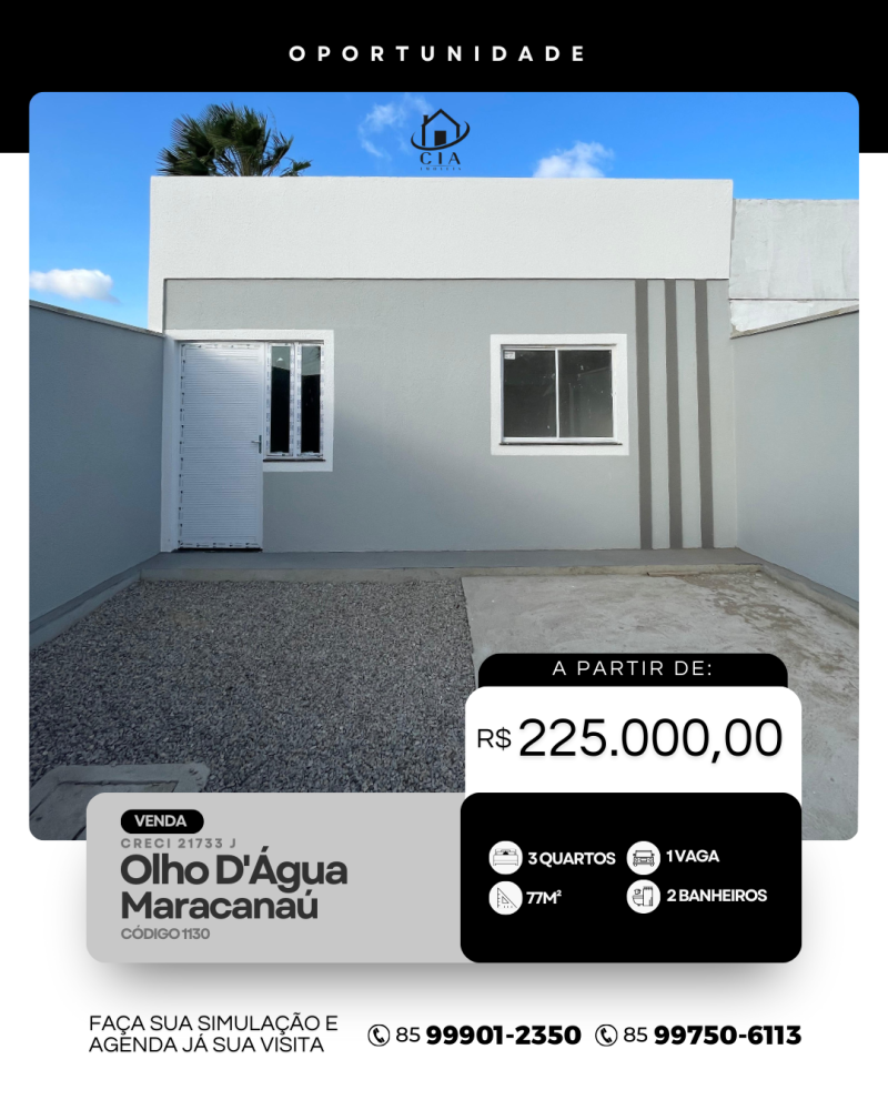 Casa Plana a Venda em Olho D´Água - Maracanaú/CE
