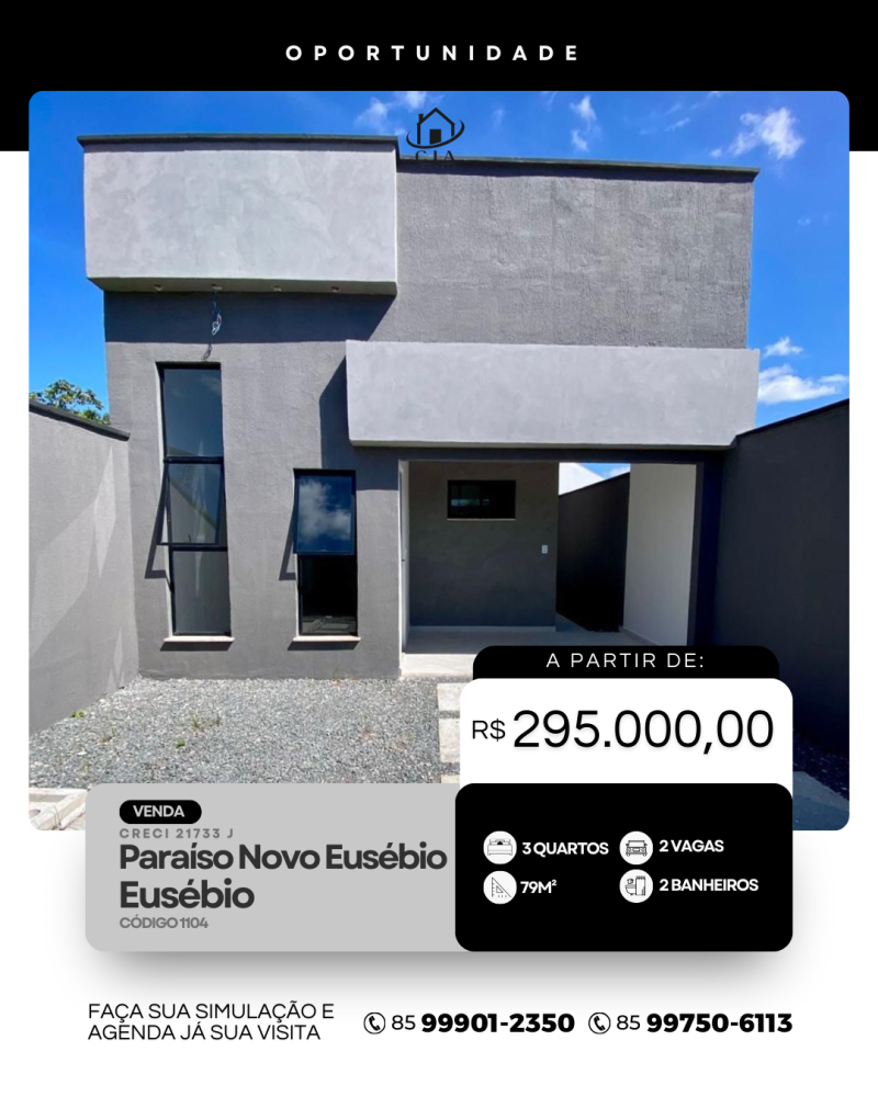 Casa Plana a Venda em Paraíso Novo Eusébio - Eusébio/CE