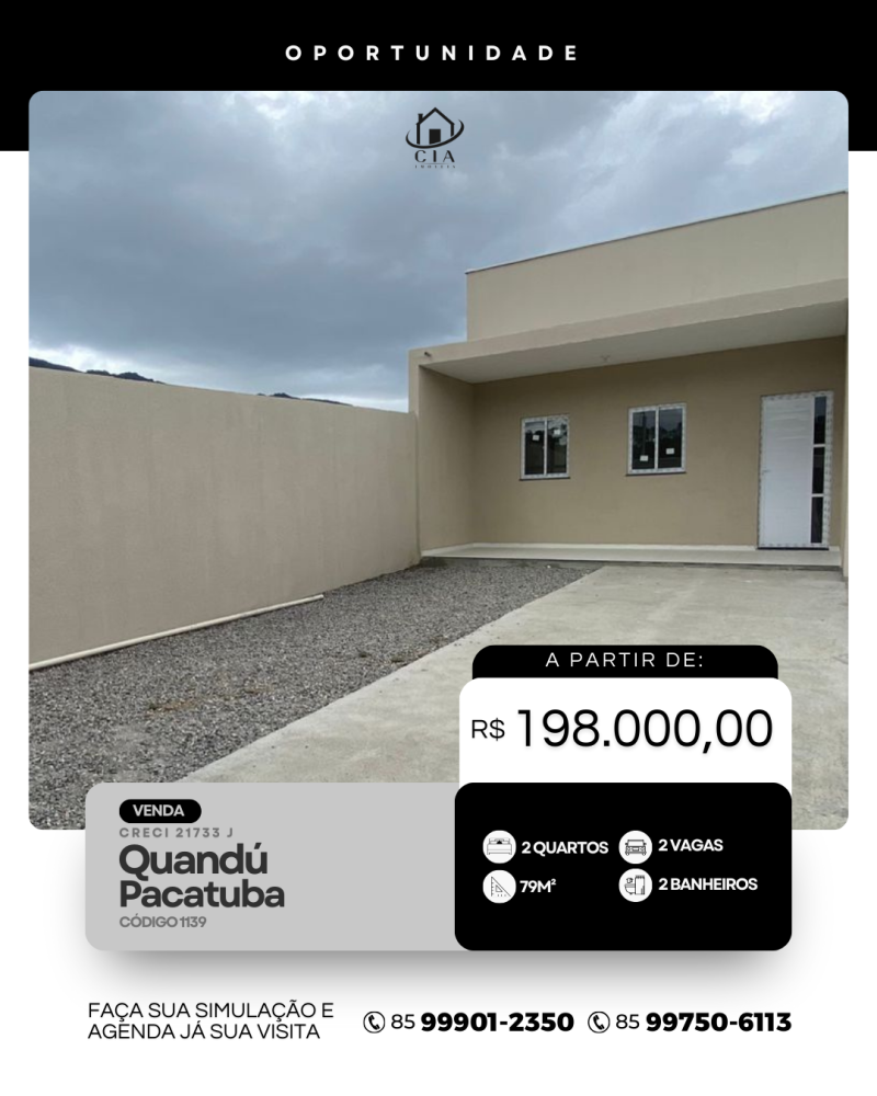 Casa Plana a Venda em Quandú - Pacatuba/CE