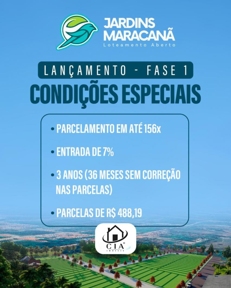 No Jardins Maracanã, você garante o seu lote em um loteamento aberto com infraestrutura completa e a menor parcela da região que mais cresce em Maracanaú.