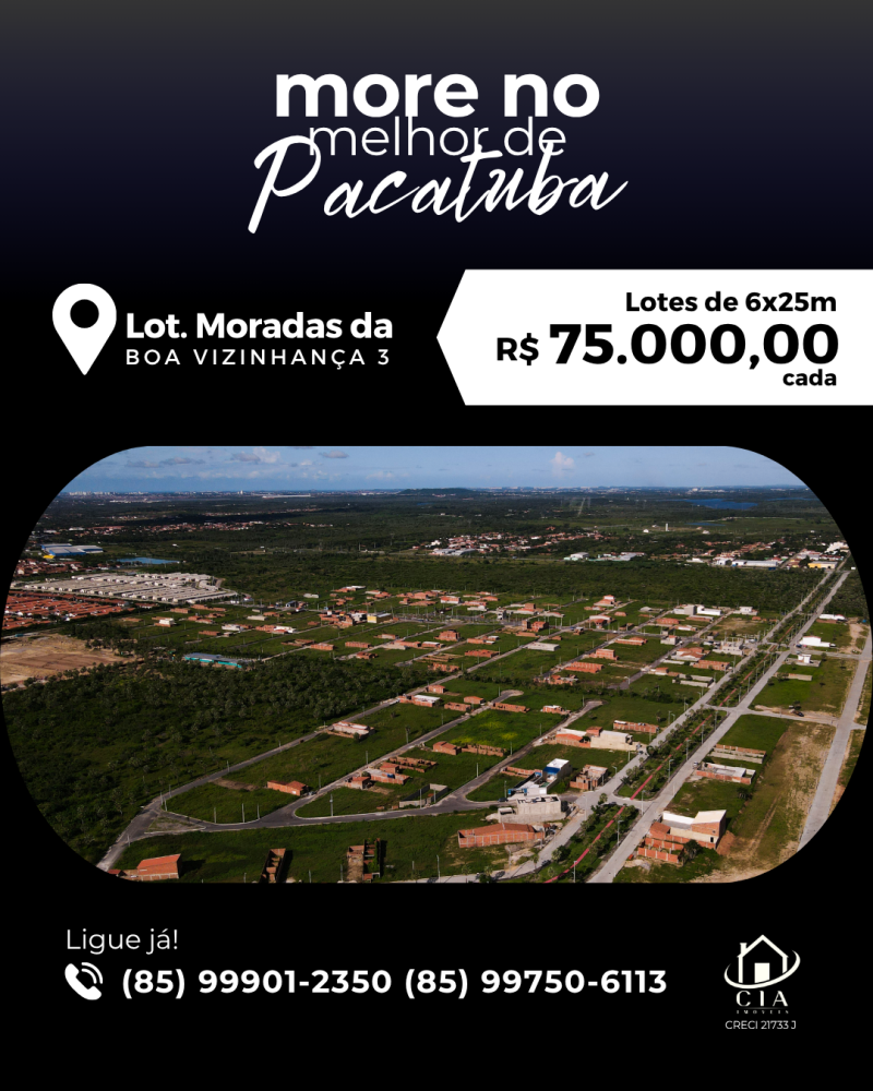 Cada lote possui 6x25m e está sendo vendido por apenas R$ 75 mil.